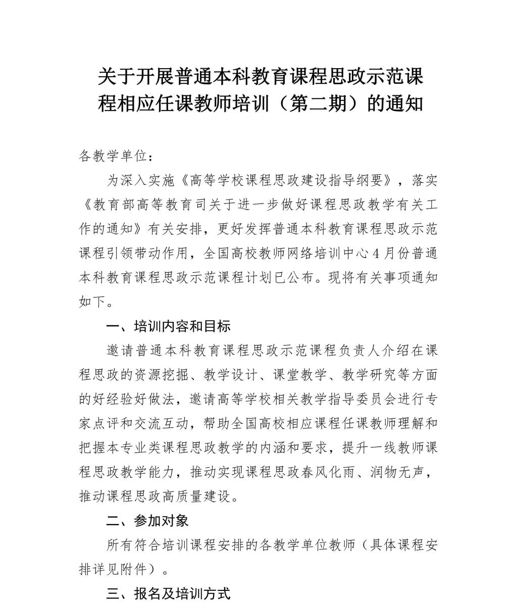 关于开展普通本科教育课程思政示范课程相应任课教师培训(第二期)的通知